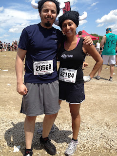 Once thing that Jorge and I were talking about after the race is that there were a lot more crawling and climbing obstacles than last year. We crawled through some trenches under barb wire, climbed up a few rope walls. One wall had a small pool of water before it and sprinklers showering down muddy water on us as we climbed it. Another wall, the rope was so soaked that it was hard to climb up.