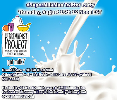 In promoting The Rock’s milk campaign and The Breakfast Project, the fellas at Life of Dad are going to throw a #SuperMilkMan Twitter Party this Thursday, August 15 at 12 noon EST/11am CST.  Why should you attend this party? Did you not look at the picture? There is a 16GB iPad mini up for grabs along with 5 “The Rock-MIlk Gift Packs”!  A party where you don’t have to leave home and you can win a prize? Sign me up!