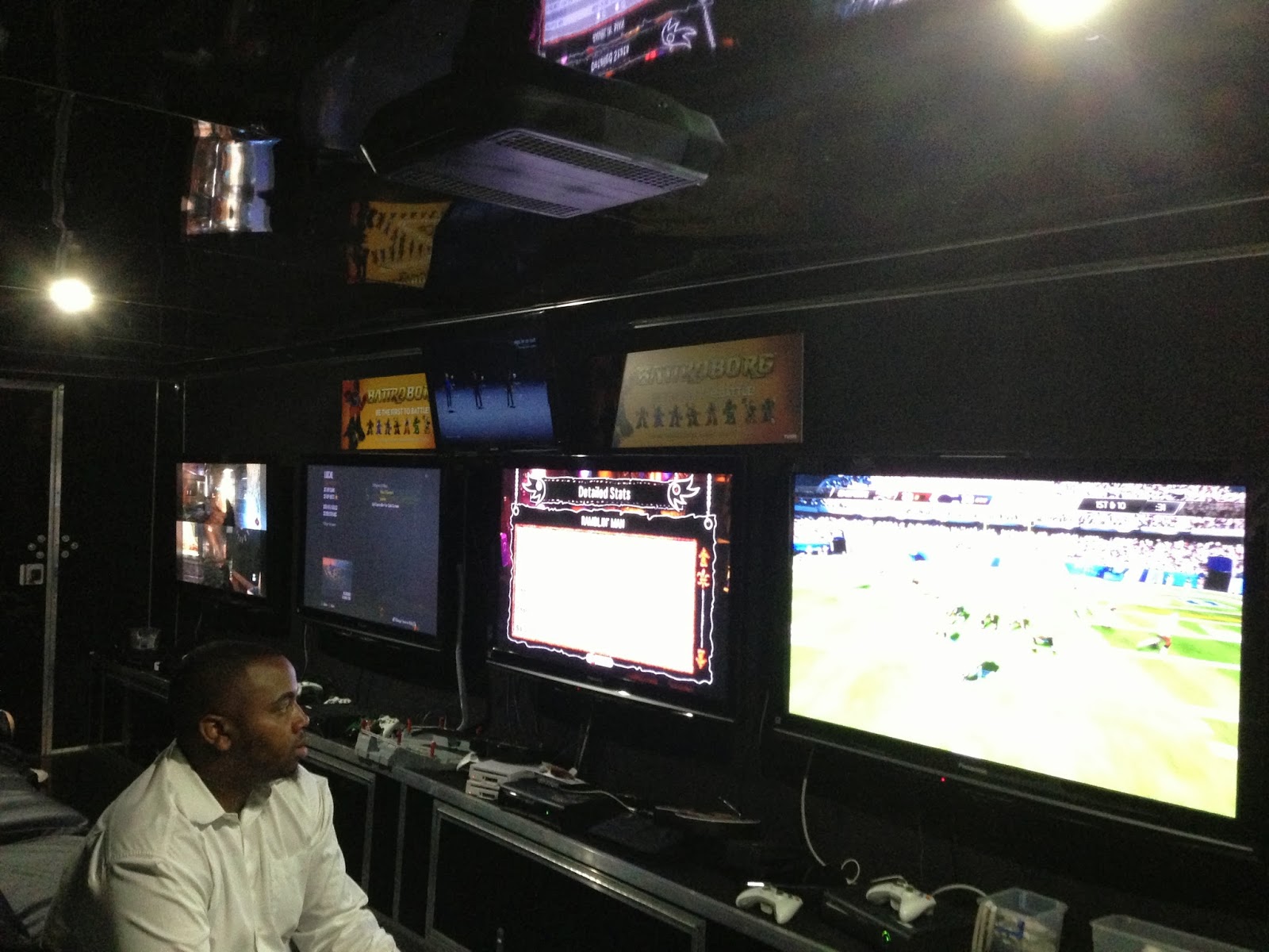 Another aspect of the night was the Gametruck that was parked next to our battle arena. Now I think for my next birthday I would like to have one of these trucks show up to my party. The Gametruck is loaded with flat screen televisions and each one is hooked up to a video game system. They have the newest games for each system and you can sit down and just play the games relaxing on the leather recliners.