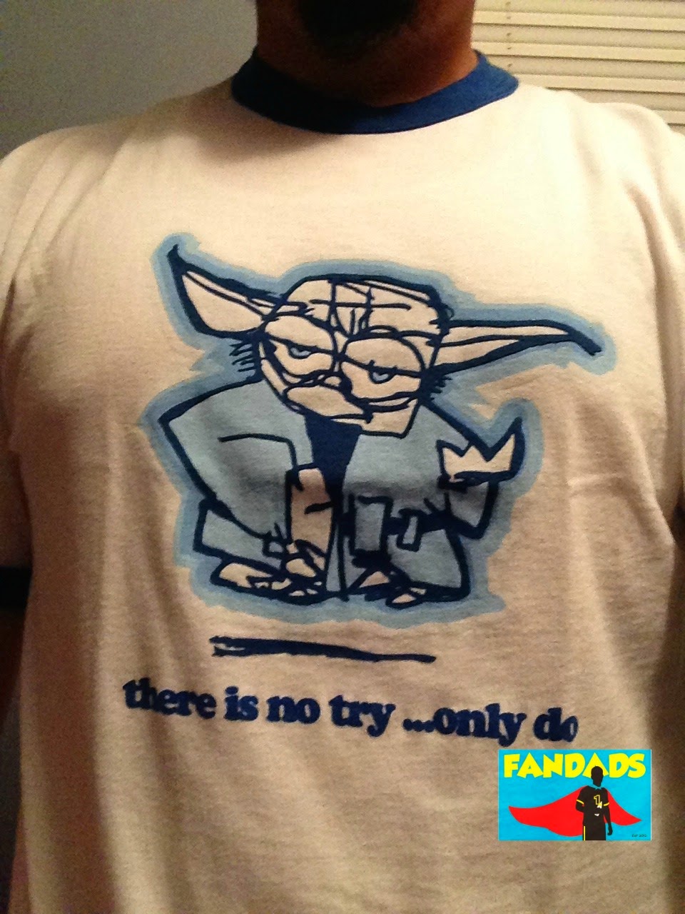 I bought this shirt along with another one with a similar design off the StarWarsShop years ago. I mainly bought them because of the artwork. I really liked the look of Yoda and I thought it was one of the coolest shirts of him that I have ever seen.