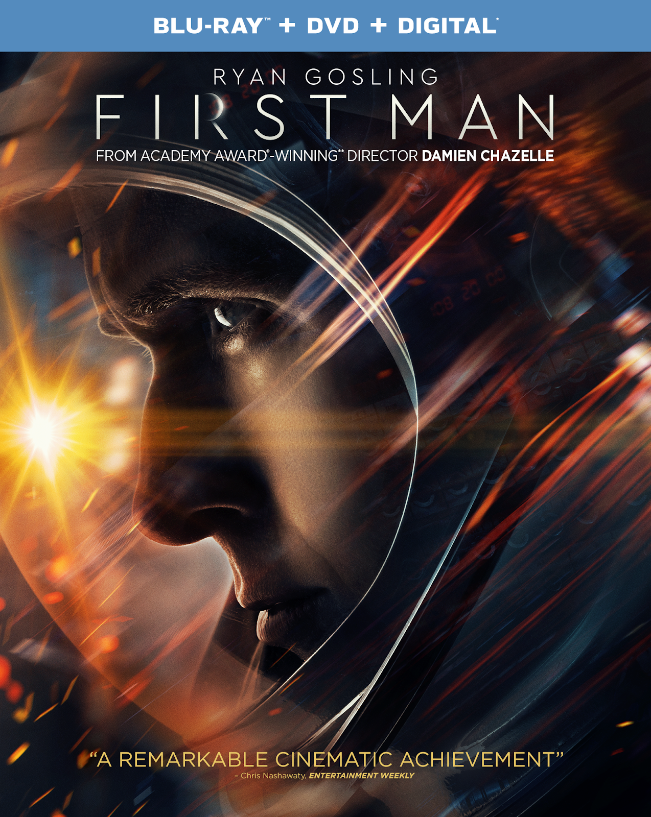 Follow the gripping and captivating true story of the first manned mission to the moon in FIRST MAN, arriving on Digital and via the digital movie app MOVIES ANYWHERE on January 8, 2019 and on 4K Ultra HD, Blu-ray™, DVD and On Demand on January 22, 2019 from Universal Pictures Home Entertainment. Hailed by critics as “the best movie of the year” (Collider) and “exhilarating” (Entertainment Weekly), FIRST MAN comes from acclaimed Oscar®-winning director Damien Chazelle (La La Land, Whiplash) and stars Ryan Gosling (La La Land, The Big Short) as Neil Armstrong and Claire Foy (“The Crown,” Breathe) as Janet Armstrong in the heroic and emotionally driven journey through a pivotal moment in the history of mankind. Receiving two Golden Globe® nominations for Best Supporting Actress (Foy) and Best Original Score (Justin Hurwitz), the critically acclaimed film is packed with bonus features including deleted scenes and special featurettes showing behind-the-scenes looks at creating the film.